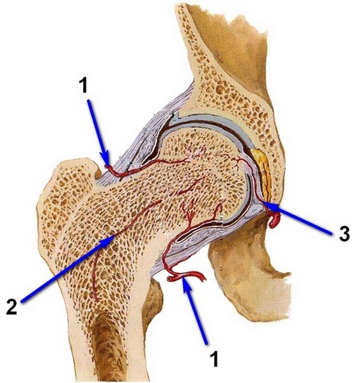 Кость может жить только тогда, когда к ней поступает кровь. Кровоснабжение головки бедренной кости осуществляется тремя основными путями: